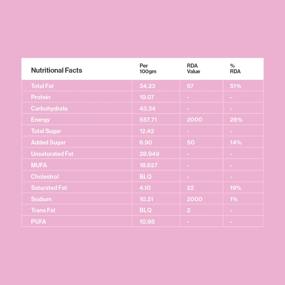 Rolled Oats, Almonds, Pumpkin Seeds, Sunflower Seeds, Cinnamon, Sea Salt, Vanilla Extract, Organic Honey, Extra Virgin Olive Oil, Dried Cranberries.