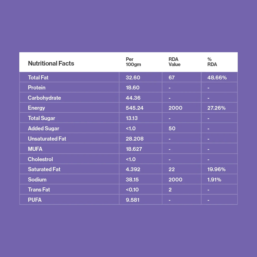 Rolled Oats, Almonds, Walnuts, Pumpkin Seeds, Sunflower Seeds, Cinnamon, Sea Salt, Orange Zest, Vanilla Extract, Dried Blueberries, Organic Honey, Extra Virgin Olive Oil